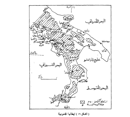 تشغل ايطاليا الجنوبية الجزء المتبقي من شبه الجزيرة الايطالية ، ويمكن أن تقسم الى ثلاث وحدات تضاريسية هي :