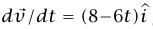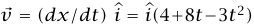 مثال 5–6 (قدرة الجسيم). جُسيم كتلته 2kg يتحرك بطول المحور x، وموضعه في الزمن t يُعطى بالمعادلة x = 4t + 4t2 – t3؛ حيث x بالأمتار وt بالثواني. احسب القدرة اللحظية التي تُعطى للجسيم عند 1 = t و2 = t.