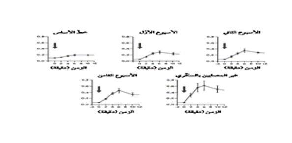 تنشط الخلايا المنتجة للإنسولين تظهر الرسوم الأربعة الأولى الاستجابة لزيادة في غلوكوز الدم خلال الأسابيع الثمانية لدراسة النقطة المعاكسة في الناس المصابين بالسكّري من النوع الثاني، يظهر الرسم اعلاه ما يحدث في الناس غير المصابين بالسكّري.