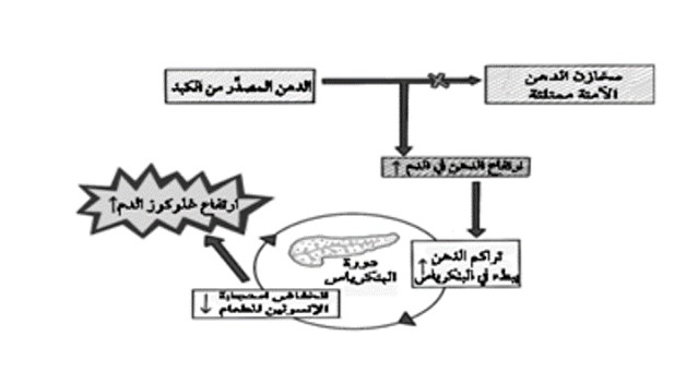 ـ يتسبب الدهن الزائد في جعل خلايا بيتا البنكرياسية تفقد قدرتها الخاصة لصنع الإنسولين.