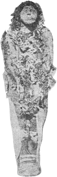 وقد سلب اللصوص في أيامنا ما عليهما من حلي. وقد ذكرنا من قبل أن البردية الخاصة بهذه الملكة كانت موضوعة في هيكل من الخشب على هيئة «أوزير»، وكان ضمن الأشياء التي قدمها عبد الرسول لمدير «قنا»، عندما اعترف له بالمكان الذي فيه الموميات (راجع Naville. Pap. Funeraire de la XXI Dyn. P. 8 PI. III, et Gauthier. L. R. III, p. 255 & note 2.).