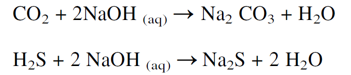 Absorption of acid gases occurs in an absorber containing an aqueous solution of DGA, and the heated rich solution (saturated with acid gases) is pumped to the regenerator. Diglycolamine solutions are characterized by low freezing points, which make them suitable for use in cold climates. Strong basic solutions are effective solvents for acid gases. However, these solutions are not normally used for treating large volumes of natural gas because the acid gases form stable salts, which are not easily regenerated. For example, carbon dioxide and hydrogen sulfide react with aqueous sodium hydroxide to yield sodium carbonate and sodium sulfide, respectively.