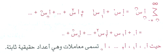 وهي المتسلسلة اللانهائية والتي تظهر المتغير س في كل حد من حدودها كما في الصورة التالية :