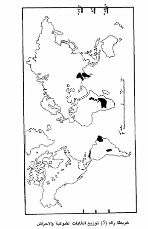 وفي افريقيا تمتد في نطاق يشمل الجهات الجنوبية لموزمبيق وأقاليم من تنزانيا والمناطق الممتدة ما بين اثيوبيا والسودان وتظهر في آسيا على هضبة الدكن ونهر السند والكنج وشمال شرق تايلند وخاصة اقليم Padeng وفي الجهات المواجهة للرياح التجارية الشرقية في كل من سيلان وبورما وخاصة اقليم indaing ، كما تتوزع في الجهات الشرقية الشمالية وبعض المناطق الداخلية وتتوزع في مناطق محددة من اليمن كما في حضرموت.