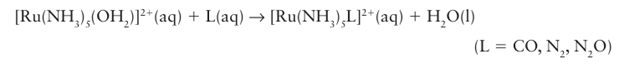 These Ru and the related Os pentaamine species are strong donors, and consequently the complexes they form with the acceptors CO and N2 are stable.