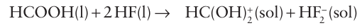 It is a much weaker acid (pKa=3.45 in water) than the other hydrogen halides. Although this difference is sometimes attributed to the formation of an ion pair (H3 O+F-), theoretical considerations show that its poor proton donor properties are a direct result of the very strong H-F bond. Carboxylic acids act as bases in anhydrous HF and are protonated: