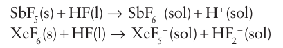 Ionic fluorides dissolve in HF to give highly conducting solutions. The fact that chlorides, bromides, and iodides react with HF to give the corresponding fluoride and HX provides a preparative route to anhydrous fluorides: