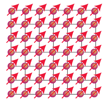 Figure 20.38 The parallel alignment of individual magnetic moments in a ferromagnetic material.