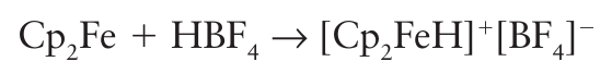 Neutron diffraction is of more use in locating hydride ligands, especially if the hydrogen atom is replaced by a deuterium atom, because deuterium has a large neutron scattering cross-section. An MH bond can sometimes be produced by protonation of an organometallic com pound, such as neutral and anionic metal carbonyls (Section 22.18e). For example, ferrocene can be protonated in strong acid to produce an Fe H bond: