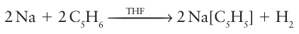 Key points: Deprotonation of cyclopentadiene gives a convenient precursor to many metal cyclopentadienyl compounds; bound cyclopentadienyl rings behave as aromatic compounds and will undergo Friedel Crafts electrophilic reactions. Sodium cyclopentadienide, NaCp, is a common starting material for the preparation of cyclopentadienyl compounds. It can conveniently be prepared by the action of metallic sodium on cyclopentadiene in tetrahydrofuran solution: