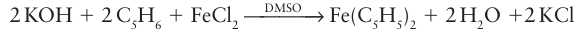 Sodium cyclopentadienide can then be used to react with d-metal halides to produce metallocenes. Cyclopentadiene itself is acidic enough that potassium hydroxide will deprotonate it in solution and, for example, ferrocene can be prepared with a minimum of fuss: