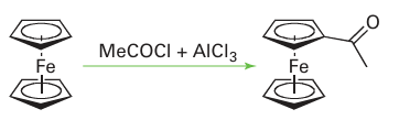 Because of their great stability, the 18-electron Group 8 compounds ferrocene, ruthenocene, and osmocene maintain their ligand metal bonds under rather harsh conditions, and it is possible to carry out a variety of transformations on the cyclopentadienyl ligands. For example, they undergo reactions similar to those of simple aromatic hydrocarbons, such as Friedel Crafts acylation: