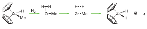 Key point: A-bond metathesis reaction is a concerted process that sometimes occurs when oxidative addition cannot take place. A reaction sequence that appears to be an oxidative addition followed by a reductive elimination may in fact be the exchange of two species by a process known as -bond metathesis. -Bond metathesis reactions are common for early d-metal complexes where there are not enough electrons on the metal atom for it to participate in oxidative addition. For instance, the 16-electron compound [ZrHMe(Cp)2] cannot react with H2 to give a trihydride as all its electrons are involved in bonding to the existing ligands. A four-membered transition state is proposed in such cases, and a concerted bond-making and bond-breaking step results in elimination of methane: