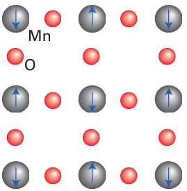 Figure 24.13 The arrangement of electron spins on the Mn2+ ions in the antiferromagnetic state of MnO.