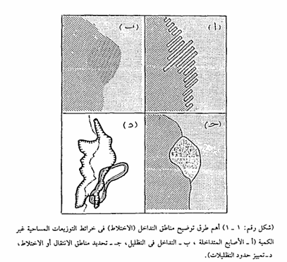 3ـ طريقة تحديد مناطق الانتقال أو الاختلاط وفيها تقوم بتحديد مناطق الانتقال وتظليلها بظل مخالف للتظليلات الأساسية المجاورة على الخريطة.