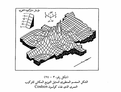 ومن أشهر الأمثلة لتطبيق مثل هذه الأشكال لتمثيل بيانات السكان ما قام به کونسون Coulson من حساب مؤشر للتركيب العمري للسكان كمقياس منفرد يعبر عن خصائص التركيب العمرى للسكان. كما قام برسم هیستو جرام مثالي للتركيب العمرى ومنه أسس علاقة خطية بين مجموعات فئات السن المتباينة، ثم بعد ذلك حسبت معدلات خط الانحدار لمجموعة صغار السن والتي أعطت نتائج دلت على شدة انحدار خط العلاقة، بينما قل انحدار خط هذه العلاقة كثيرا المجموعة كبارالسن. وباستخدام هذا المؤشر فقد أصبح في الامكان تمثيل التوزيع المكاني للتركيب العمري بطرق متباينة والتي منها الشكل المجسم المنظوري Isometric block-doagram والذي ينتج عن سطح مأخوذ من خريطة تتمثل فيها بيانات توزيع مكاني للتركيب العمري بخطوط التساوى اعتمادا على مؤشر التركيب العمري.