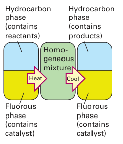 Figure 26.29 The sequence of processes that occurs during the use of a fluorous biphase catalyst