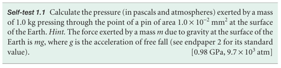 Several other units are still widely used (Table 1.1); of these units, the most commonly used are atmosphere (1 atm =1.013 25 ×105Pa exactly) and bar (1 bar =105Pa). A pressure of 1 bar is the standard pressurefor reporting data; we denote it p.