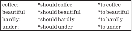 Here are some examples of verbs. You can see that they all meet the test with should and the test with to.