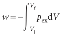 The calculation of expansion work starts from the definition used in physics, which states that the work required to move an object a distance dz against an opposing force of magnitude F is , dw= −Fdz , The negative sign tells us that, when the system moves an object against an opposing force, the internal energy of the system doing the work will decrease. Now consider the arrangement shown in Fig. 2.6, in which one wall of a system is a massless, frictionless, rigid, perfectly fitting piston of area A. If the external pressure is pex, the magnitude of the force acting on the outer face of the piston is F = pexA. When the system expands through a distance dz against an external pressure pex, it follows that the work done is dw =−pexAdz. But Adz is the change in volume, dV, in the course of the expansion. Therefore, the work done when the system expands by dV against a pressure pex is , dw=−pexdV , To obtain the total work done when the volume changes from Vi to Vf we integrate this expression between the initial and final volumes: