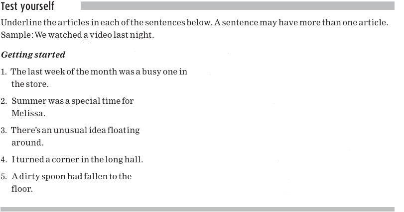 Articles give us information about a noun; they indicate whether or not the noun is a