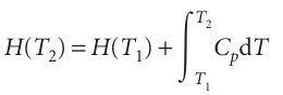 The standard enthalpies of many important reactions have been measured at different temperatures. However, in the absence of this information, standard reaction enthalpies at different temperatures may be calculated from heat capacities and the reaction enthalpy at some other temperature (Fig. 2.19). In many cases heat capacity data are more accurate that reaction enthalpies so, providing the information is avail-able, the procedure we are about to describe is more accurate that a direct measure ment of a reaction enthalpy at an elevated temperature. It follows from eqn 2.23a that, when a substance is heated from T1 to T2, its enthalpy changes from H(T1) to