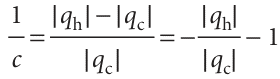 Because |qc| is removed from the cold source, and the work |w| is added to the energy stream, the energy deposited as heat in the hot sink is |qh|=|qc|+|w|. Therefore,