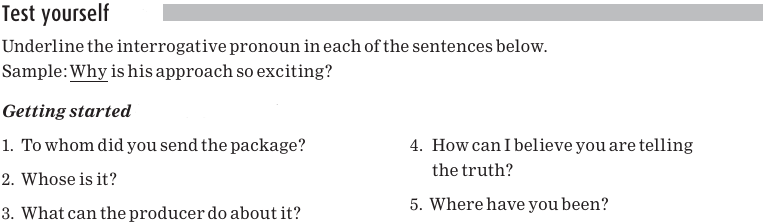 You undoubtedly recognize them as question words. They are called interrogative pronouns; we list them in the following Quick tip.