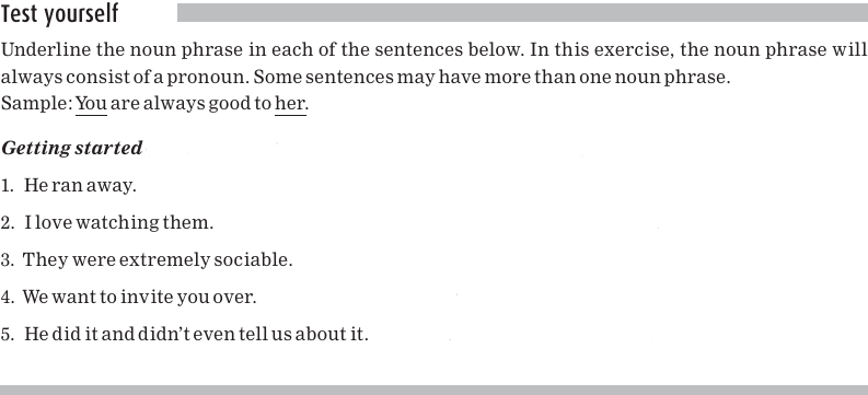 A noun phrase can consist of just a pronoun, for example he or them.