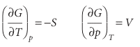 Fig. 3.18 The variation of the Gibbs energy of a system with (a) temperature at constant pressure and (b) pressure at constant temperature. The slope of the former is equal to the negative of the entropy of the system and that of the latter is equal to the volume.