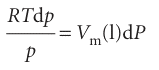 We now divide both sides by RT and assume that the molar volume of the liquid is the same throughout the small range of pressures involved: