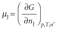 That is, the chemical potential is the slope of a plot of Gibbs energy against the amount of the component J, with the pressure and temperature (and the amounts of the other substances) held constant (Fig. 5.4). For a pure substance we can write G = nJGJ,m, and from eqn 5.4 obtain µJ = GJ,m: in this case, the chemical potential is simply the molar Gibbs energy of the substance, as we used in Chapter 4. By the same argument that led to eqn 5.3, it follows that the total Gibbs energy of a binary mixture is