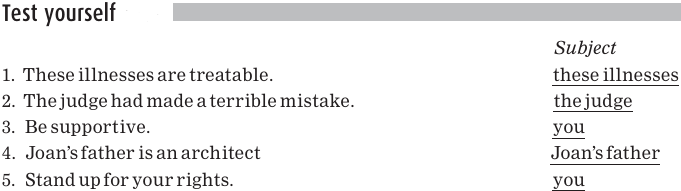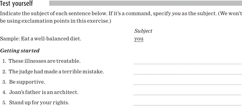 We all recognize a command when we hear one. We have seen that all sentences have a subject, but where is the subject of these commands? Speakers of English readily agree that these sentences do, in fact, have a subject. The subject, though not stated, is understood or implied to be you. Thus, when someone says ‘‘Wash the dishes!’’ you know they’re talking to you. Commands are also called imperative sentences.