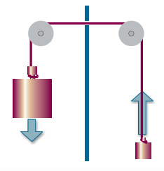 Fig. 7.2 If two weights are coupled as shown here, then the heavier weight will move the lighter weight in its non-spontaneous direction: overall, the process is still spontaneous. The weights are the analogues of two chemical reactions: a reaction with a large negative ∆G can force another reaction with a less ∆G to run in its non-spontaneous direction.