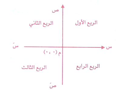 والمحوران الإحداثيان ( الخطان المتعامدان) يقسمان السطح البياني إلى أربعة أرباع كما في الشكل وهي الربع الأول والثاني والثالث والرابع .