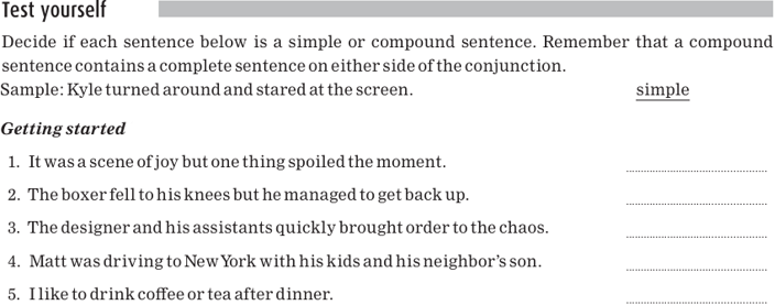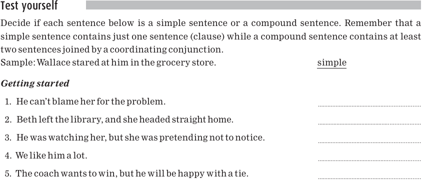 keep in mind that you can’t tell if a sentence is simple or compound by how long it is; you need to see if it contains one or more than one complete sentence within it. For example, the following sentence, although it is long, is just a simple sentence:
