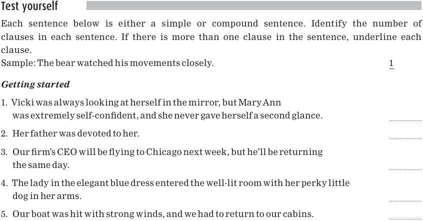 Here, the three sentences that make up this sentence are: (1) Nora was Zach’s step mother; (2) she treated him like her other children; (3) he trusted her completely. So, the sentence There was a glass vase on the table and Jane picked it up contains two sentences, or clauses. The sentence Nora was Zach’s stepmother but she treated him like her other children and he trusted her completely contains three sentences, or clauses. In fact, a compound sentence can contain any number of sentences, though we usually limit ourselves to just a few: