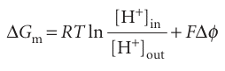 ∆Gm=F∆φ−(RTln 10)∆pH