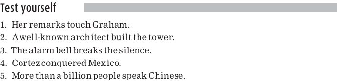 What happens when the direct object of the sentence, the children, is before the verb, as in the passive sentence19b? You can see that the first noun phrase, the children, is now controlling the form of the verb: we say, the children are visited by their aunt every Christmas (because there is more than one child). Even though there’s still only one aunt, aunt is no longer controlling the form of the verb. The important thing to keep in mind is that in a sentence it is always the noun phrase before the verb, whether or not it’s doing the action, that controls the form of the verb.