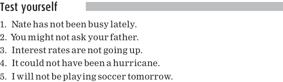 Here are some negative sentences, with not underlined and the helping verb in bold.