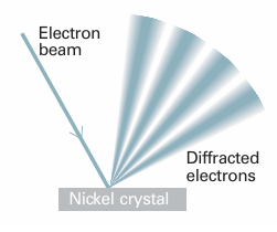 Fig. 8.15 The Davisson–Germer experiment. The scattering of an electron beam from a nickel crystal shows a variation of intensity characteristic of a diffraction experiment in which waves interfere constructively and destructively in different directions.