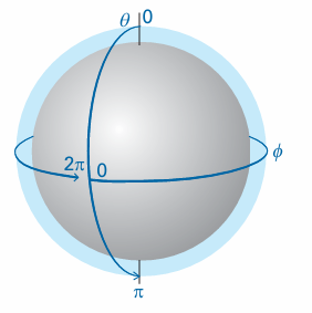 Fig. 8.23 The surface of a sphere is covered by allowing θ to range from 0 to π, and then sweeping that arc around a complete circle by allowing φ to range from 0 to 2π.