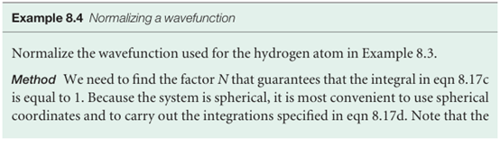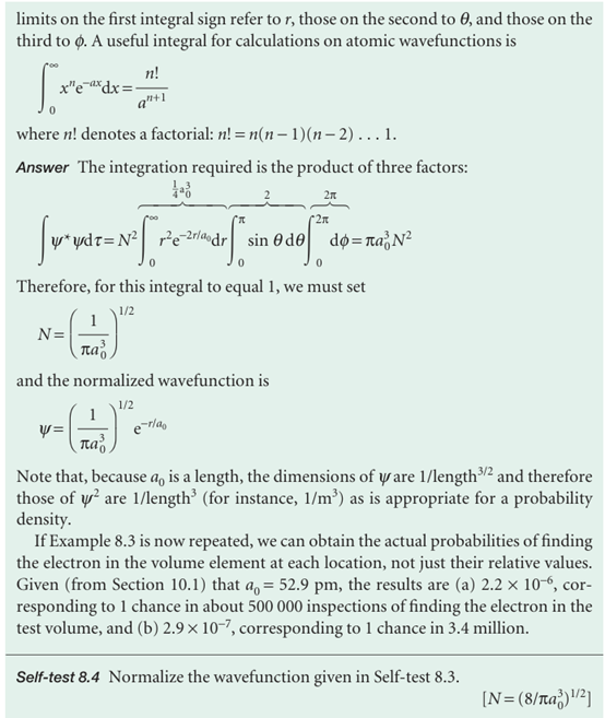Almost all wavefunctions go to zero at sufficiently great distances so there is rarely any difficulty with the evaluation of this integral, and wavefunctions for which the integral in eqn 8.15 exists (in the sense of having a finite value) are said to be ‘square integrable’. It follows that
