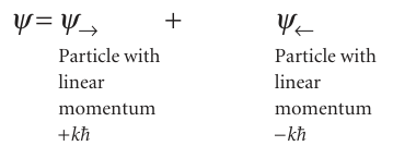 When the wavefunction of a particle is not an eigenfunction of an operator, the property to which the operator corresponds does not have a definite value. However, in the current example the momentum is not completely indefinite because the cosine wavefunction is a linear combination, or sum, of eikx and e−ikx, and these two functions, as we have seen, individually correspond to definite momentum states. We say that the total wavefunction is a superposition of more than one wavefunction. Symbolically we can write the superposition as