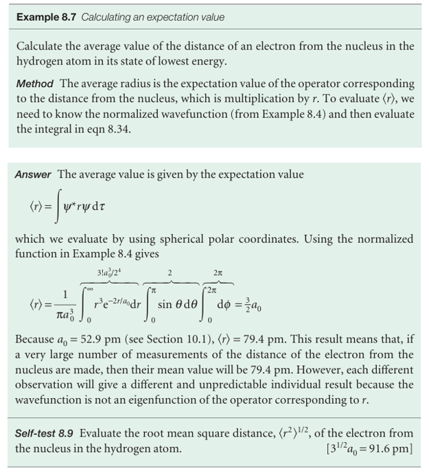 Justification 8.4The expectation value of an operator If ψ is an eigenfunction of Ω with eigenvalue ω, the expectation value of Ω is