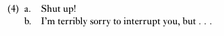 Similarly, in the example in (2b), the utterance represents a command, which is also a type of speech act. Language provides a means of communication, allowing us to share our wishes and desires. Moreover, the way in which these wishes and desires are expressed signals who we are, and what kind of relationship we have with our addressee. We would be unlikely to issue a command like (2b) to the Queen of England, for example.