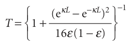 T≈16ε(1−ε) e−2κL