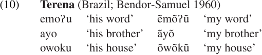 The term SUPRAFIX is sometimes used to refer to a morphological marker which consists only of a change to some SUPRASEGMENTAL feature: tone, stress, length, nasalization, etc. A famous example is found in Terena, in which nasalization is used to indicate a first-person singular possessor: