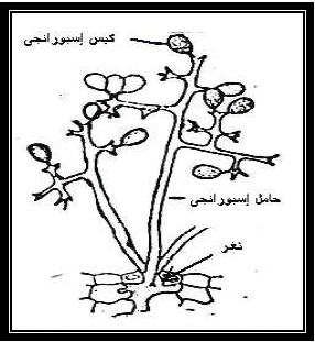 شكل يوضح الحامل الأسبورانجي لمسبب البياض الزغبي في العنب (بلازموبارا فيتيكولا)