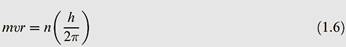 In 1913, Niels Bohr combined elements of quantum theory and classical physics in a treatment of the hydrogen atom. He stated two postulates for an electron in an atom: . Stationary states exist in which the energy of the electron is constant; such states are characterized by circular orbits about the nucleus in which the electron has an angular momentum mvr given by equation 1.6. The integer, n, is the principal quantum number.